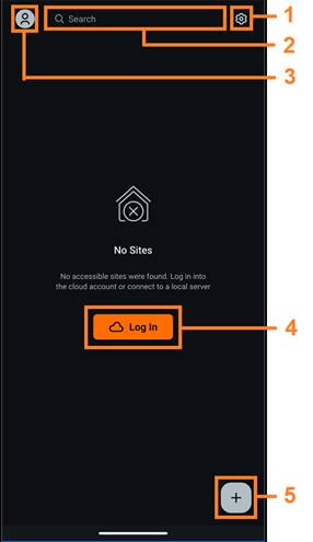 - Sites – tap to view a list of the current user’s DW Spectrum Systems that are not connected to DW Spectrum Enterprise.