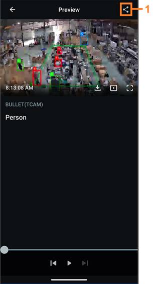 - Object/Bookmark Share – the share button will only appear when connected to servers using DW Spectrum version 6.1 or newer. Tap to generate a hyperlink that can be shared for viewing logged bookmarks or object detection events in the archive.
